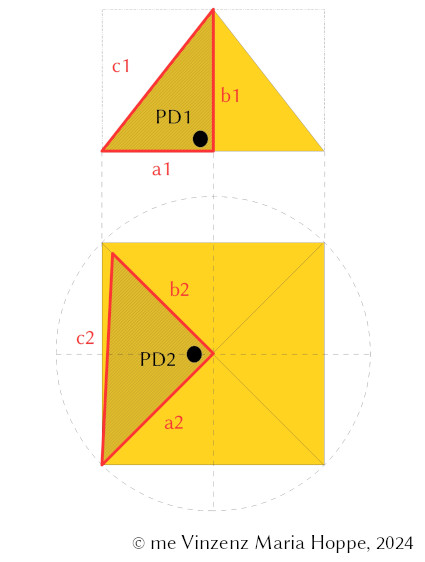 c2 = Kantenlänge Cheopspyramide (Hypothenuse der rechtwinkligen Dreiecksfigur a1 zu b)