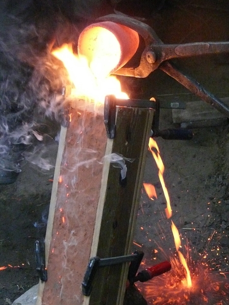 Das Foto zur Vorankündigung fand ich übrigends richtig gut, gerade auch weil man sieht, wie beim Einfüllen der Bronze meist immer auch etwas daneben geht, wenn sich die Form entlüftet. Super !