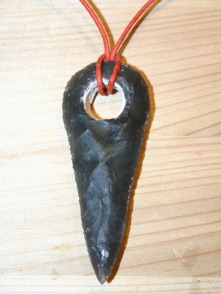 aber das Loch dürfte jetzt in der Tat gepickt oder gebohrt sein, oder gibt es natürliche Löcher in Obsidian? Ich kenne jedenfalls keine. Und der schwarze Mexikaner lässt sich ja auch ganz gut durch Picken zermürben und schleifen und bohren wohl auch. Gegenvorschläge???