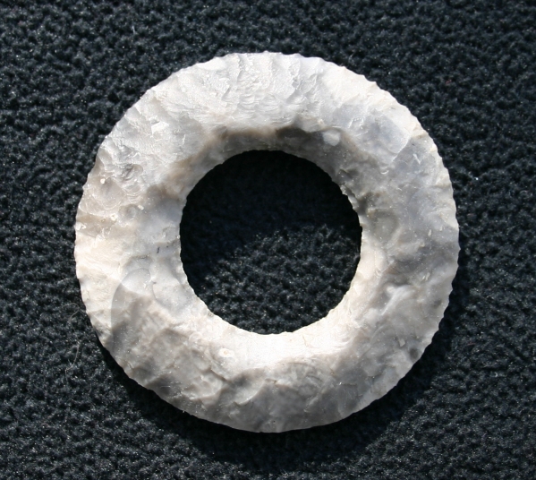"Petrie (Petrie and Quibell 1896) had the idea that bangles were formed by shaping naturally occurring rings “Nodules of flint are to be found in the limestone presenting a resemblance to Saturn with his ring. When the central boss could be detached, the ring would be used. Commonly, however, it appears that rings were found in the gravel already detached, or the division between the boss and the ring so much reduced by solution of the soluble silica so as to admit of easy separation. The finished rings in section shew [sic] a great change at the surface, greater than their age would warrant if made out of flint directly derived from the rock, though just such an amount as might be expected from flint which had lost part of its silica by exposure to the gravel and becomes porous.’’ There is at least one known example of a flint bracelet which was made from a naturally occurring flint ring which is now in the museum at St Germain-en-Laye (No. 52.651, Beck and Cleyte-Merle 1982, 98). The example is unfortunately undated but is from the Theban area where many naturally shaped rings occur on the west bank.