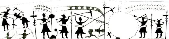 Sorry, zu dieser Zeit gab es höchstwahrscheinlich noch keine Infanterie-Taktiken, Schilde sind zumindest in der Felsbildkunst unbekannt, aber hier is eine gute Parallele: