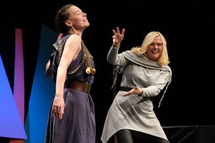 Bei der Performance zu „Bronzezeitliche Unberührbare & Hallstattzeitliches It-girl mit Soundeffekt“