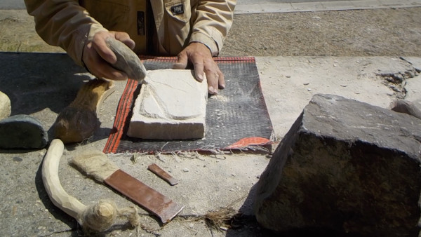 Es folgen in Kürze Videos zu den folgenden in diesem Thema dokumentierten Steinbearbeitungs-Vorversuchen:
