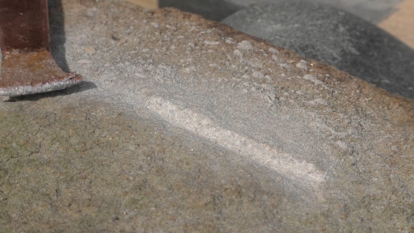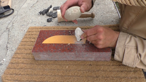 - Granit beklopfen (Zertrümmern der Oberflächen)