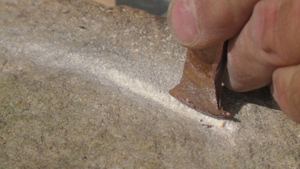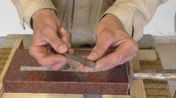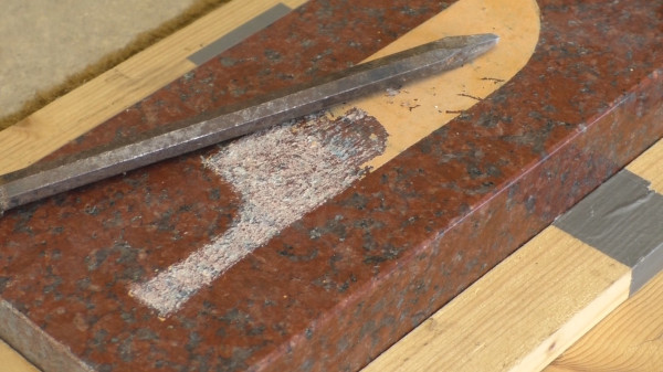 - Erste Vorversuche zum Thema des Anlegens einer Hieroglyphe in Hartgestein (Finnischer Granit, deutlich "härter" als Assuan-Granit)